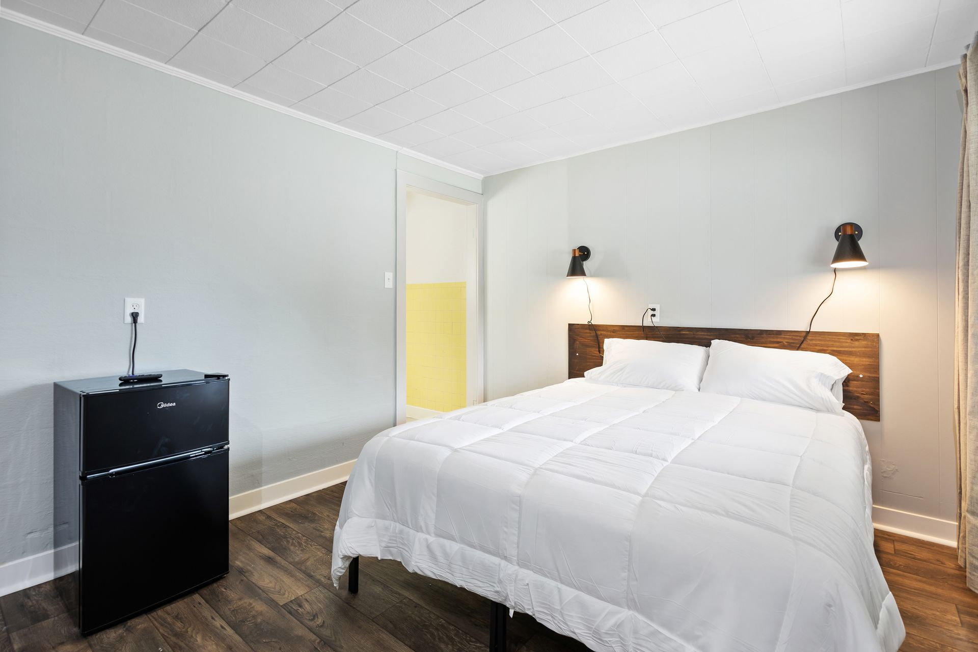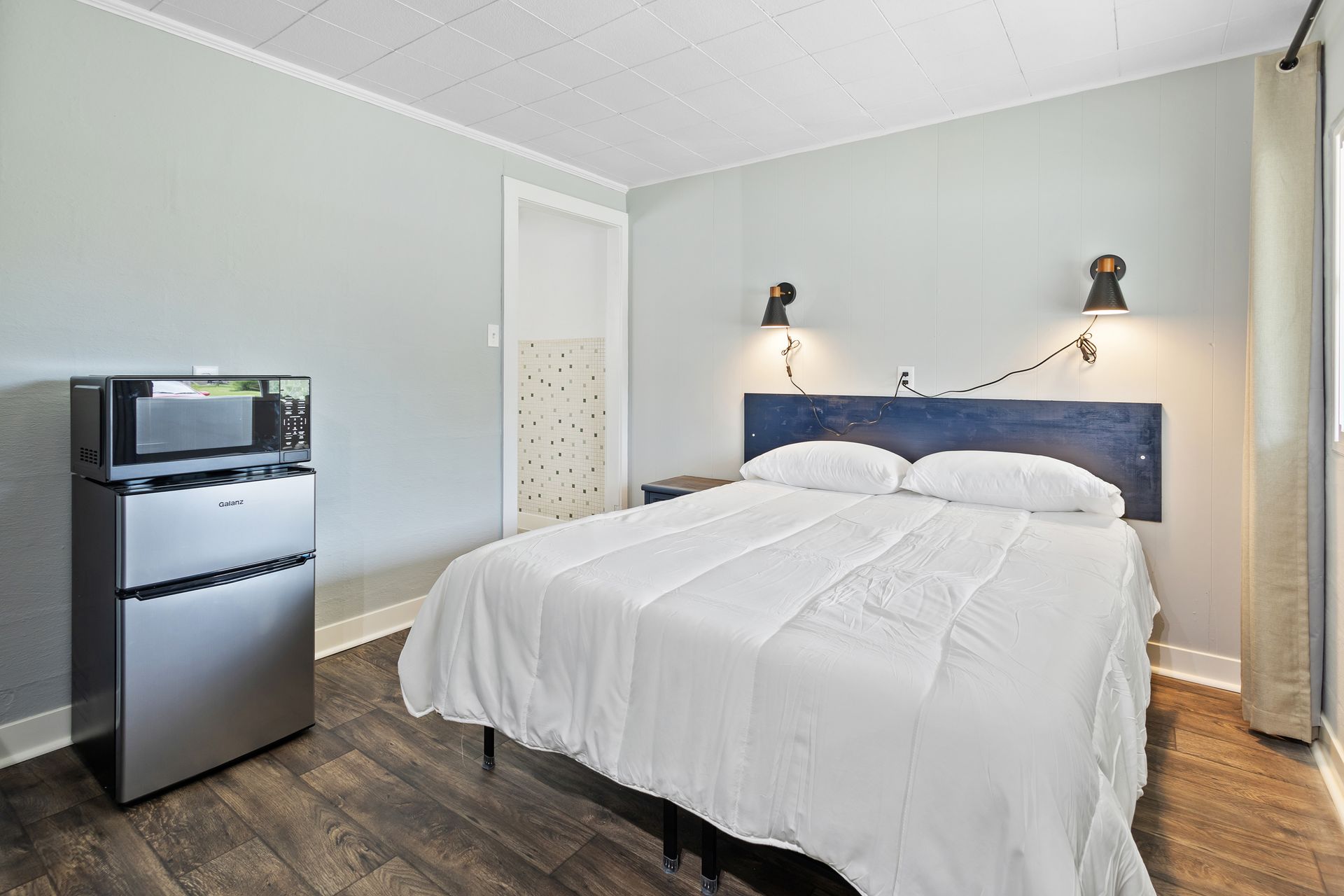 Our Queen Deluxe Suite with Kitchenette offers a perfect blend of comfort and convenience, ideal for long-term or short-term stays. This suite features a cozy queen bed, a private bathroom, and a well-equipped kitchenette that includes a refrigerator, microwave, and basic utensils, making meal preparation a breeze. Perfect for professionals, travelers, or anyone seeking a welcoming home away from home, this suite combines practicality with a touch of style.